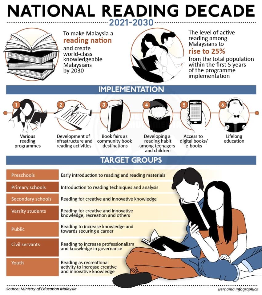 Dekad Membaca Kebangsaan sudah pun dilancarkan pada 13 Feb 2020 oleh PM ke-7 di Universiti Kebangsaan Malaysia. Mari semaikan sikap suka membaca supaya masyarakat dapat menguasai pelbagai ilmu dan dapat memperolehi pelbagai maklumat yang sahih dan berguna.